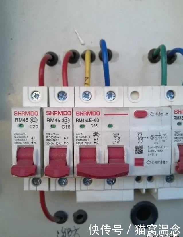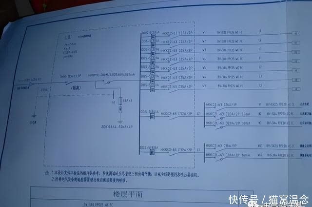 每个子箱HE的出线是一条3x6方线,经过单相电能表,然后通过25A 2P微型断路器到达地板子箱。如下图: