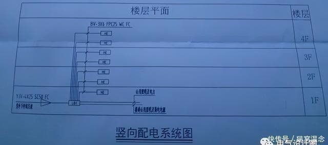 楼层配电系统图,让我们知道:这个4层楼共有8个配电箱,其中1F有一个主箱LB1,一个副箱HE,其余两个副箱HE在每层楼。一楼主箱全部引出3Ⅹ6,即3×6方铜线。主箱还包括走廊、弱电等公共用电部分。